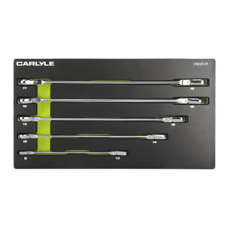 5 PC Metric 12 PT 72 Tooth Extended Box Ratcheting Flex Long Double Box Wrench Set