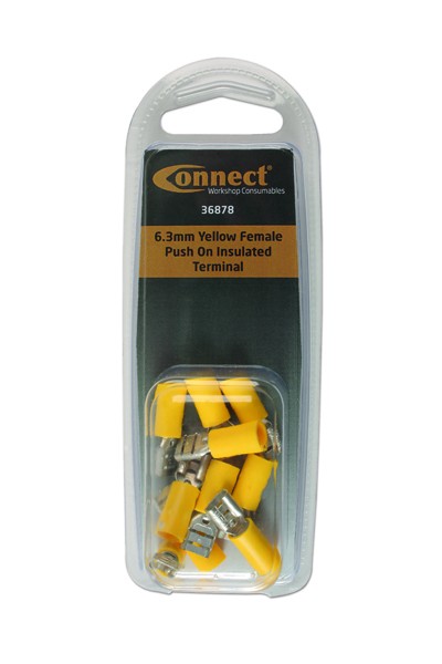 6.3mm Female Push On Insulated Terminal Pack of 10 (Yellow Pre Insulated Terminals)