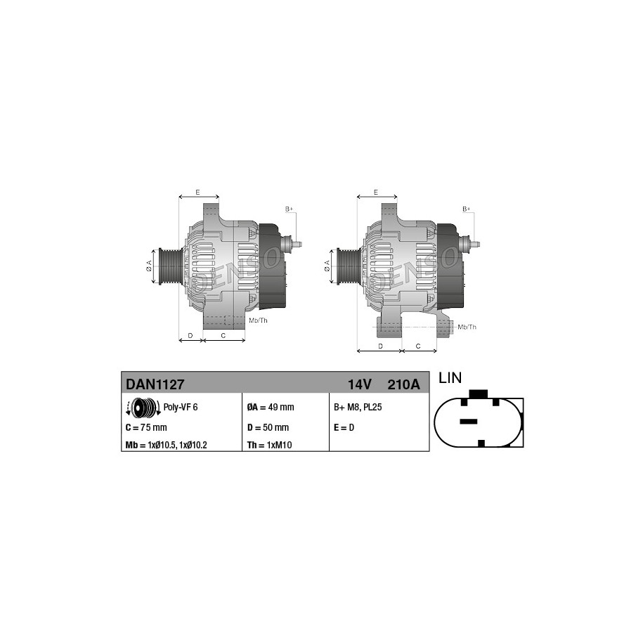 Product: Alternator DENSO DAN1127 OE Ref 12317605479