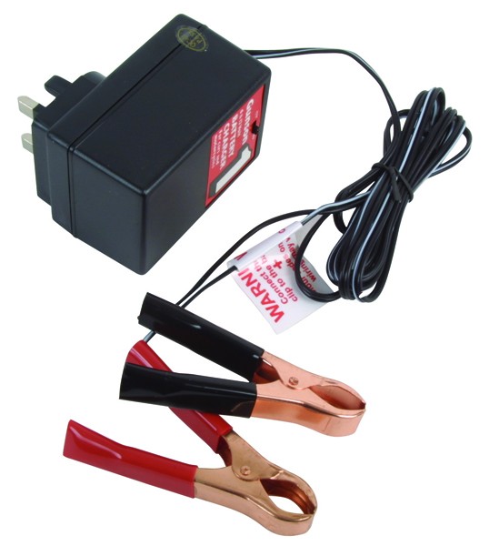 A simple trickle charger plugs directly into mains supply