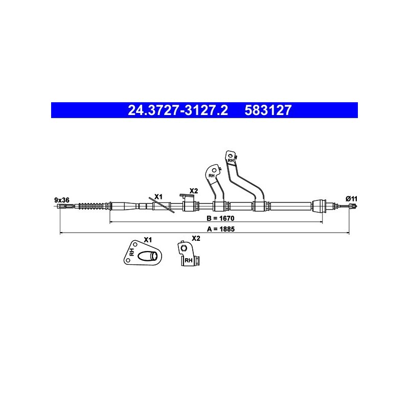 To confirm the correct fitment, it is always recommended to match or Cross Reference the OEM part numbers for this Brake Cable ATE OE Ref.