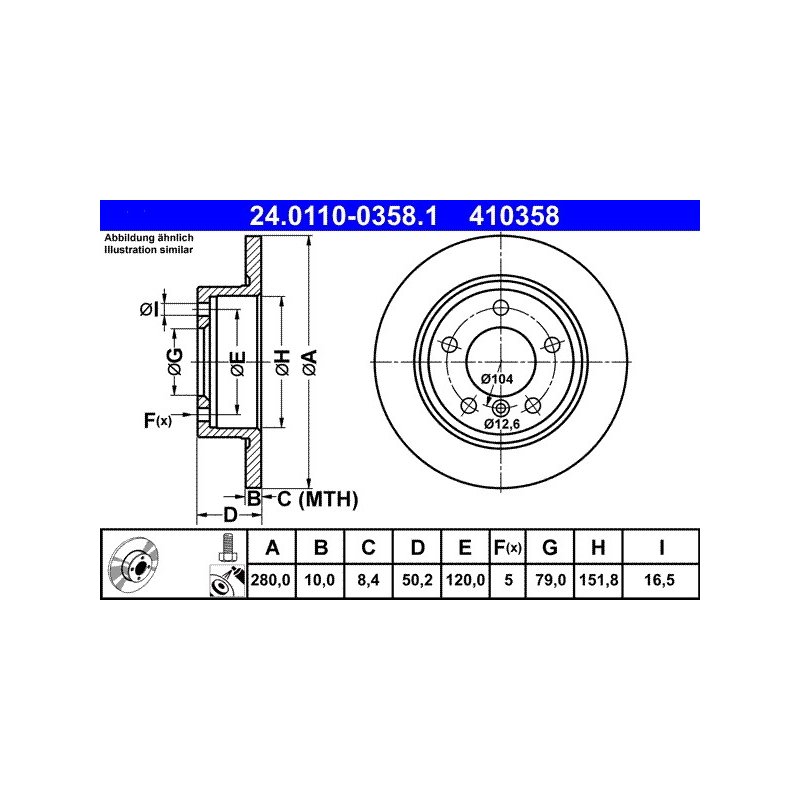 Product: Brake Disc ATE 24.0110-0358.1 OE Ref 34219811539
