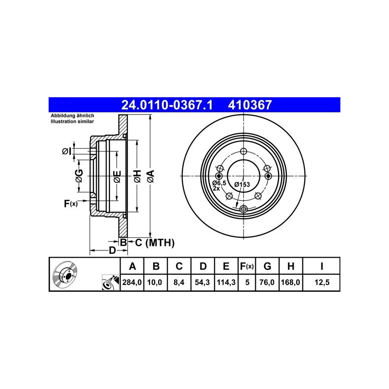 This Brand New Brake Disc ATE OE Ref 584113K110 for HYUNDAI, KIA manufactured by ATE.This is a direct replacement Brake Disc ATE OE Ref 584113K110 part and equivalent to OEM Part number 584113K100 and some other cross reference part numbers. This is top quality and fully guaranteed Brake Disc ATE OE Ref 584113K110 manufacturer by ATE with Reference Number 24.0110-0367.1, EAN: 4006633384322. At e Auto Parts, This Brake Disc ATE OE Ref 584113K110 is available at best competitive prices including Vat at £72.00. We are one of the UK`s leading Braking System supplier with an excellent feedback from our customers. Buy with Confidence, 30 days money back guarantee!