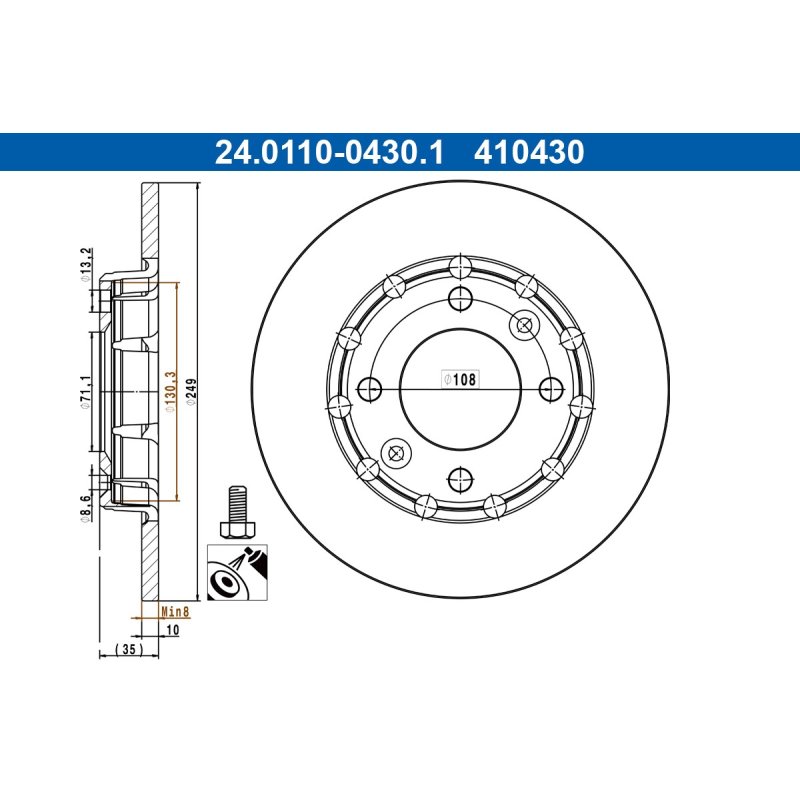 Product: Brake Disc ATE 24.0110-0430.1 OE Ref 1643574180