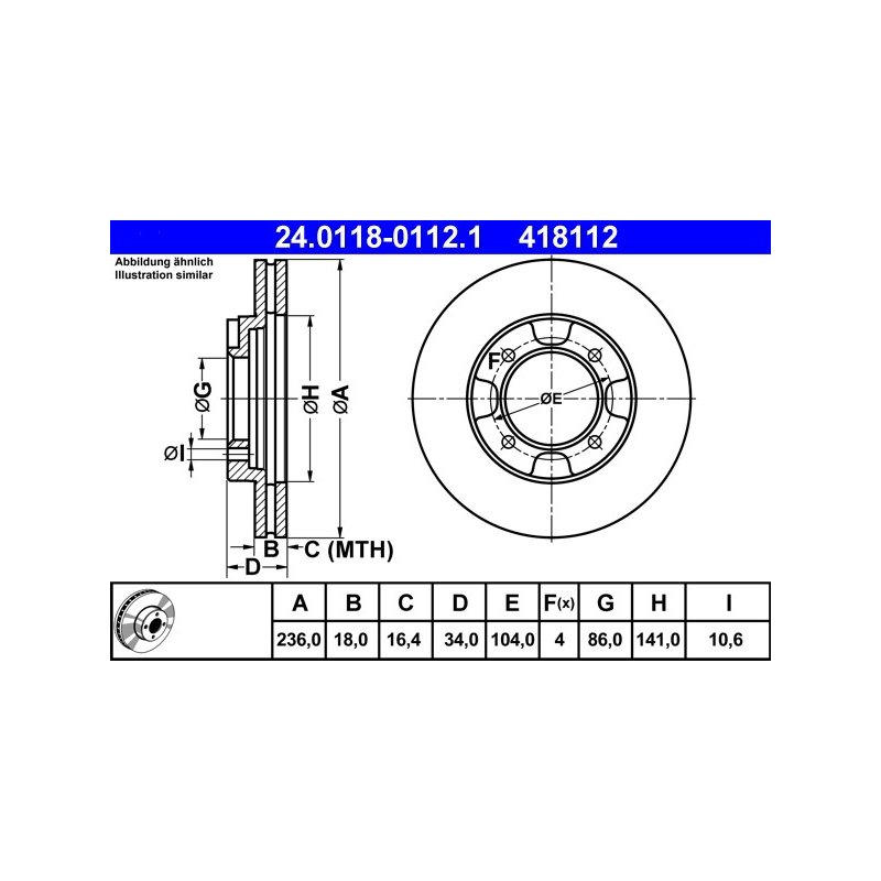 Product: Brake Disc ATE 24.0118-0112.1 OE Ref MB618734