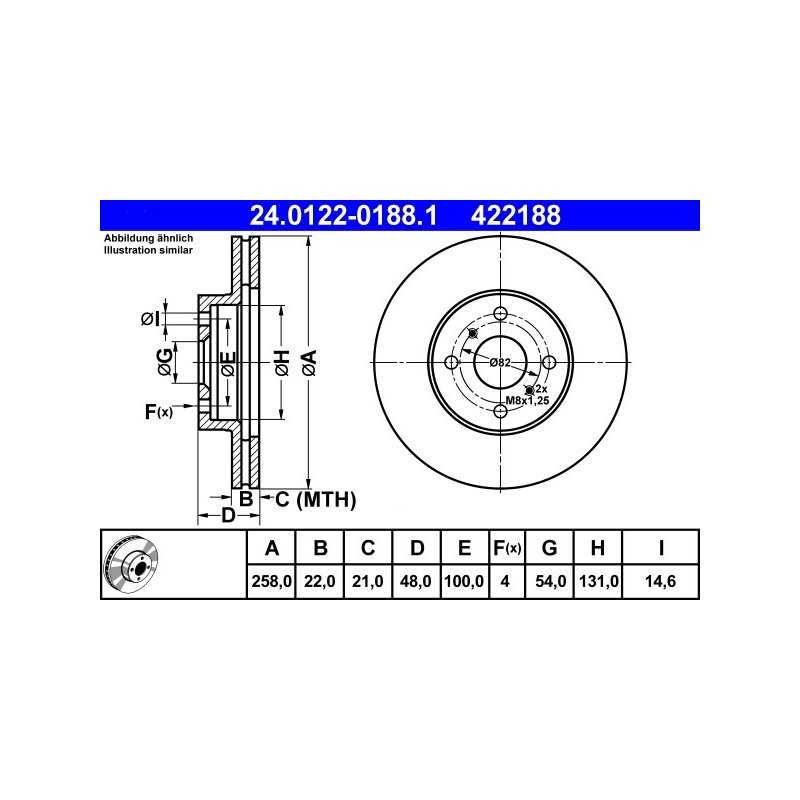 This Brand New Brake Disc ATE OE Ref for TOYOTA manufactured by ATE.This is a direct replacement Brake Disc ATE OE Ref part and equivalent to OEM Part number 4351212490 and some other cross reference part numbers. This is top quality and fully guaranteed Brake Disc ATE OE Ref manufacturer by ATE with Reference Number 24.0122-0188.1, EAN: 4006633029308. At e Auto Parts, This Brake Disc ATE OE Ref is available at best competitive prices including Vat at £82.00. We are one of the UK`s leading Braking System supplier with an excellent feedback from our customers. Buy with Confidence, 30 days money back guarantee!