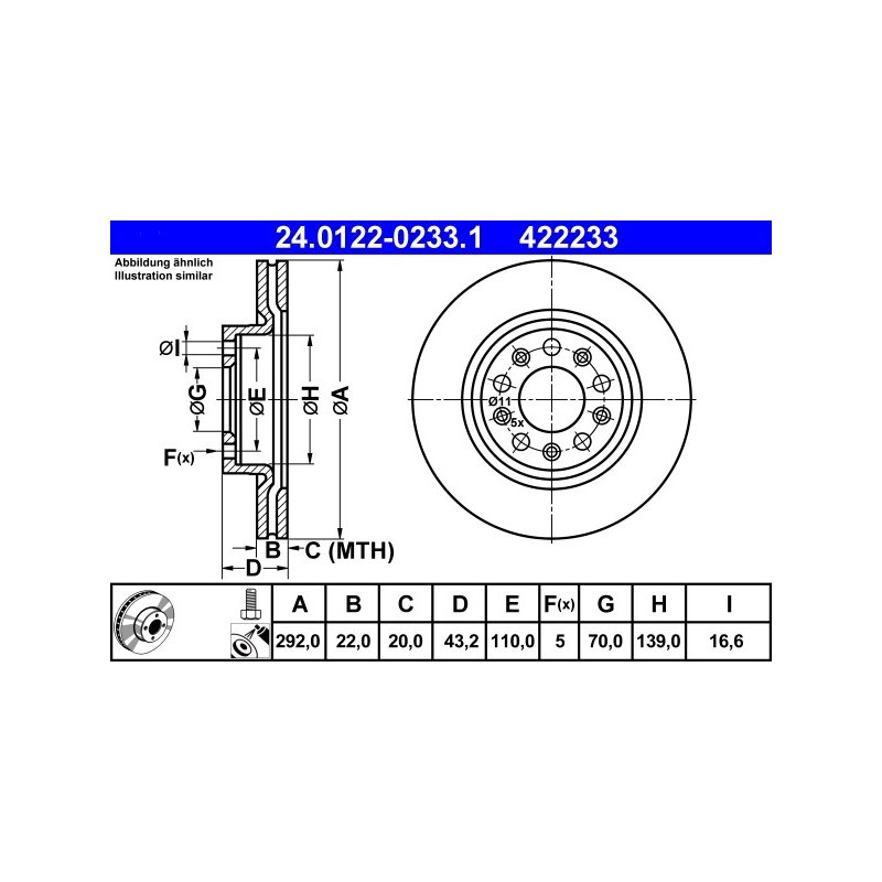 This Brand New Brake Disc ATE OE Ref 51760274 for ALFA ROMEO manufactured by ATE.This is a direct replacement Brake Disc ATE OE Ref 51760274 part and equivalent to OEM Part number 46843611 and some other cross reference part numbers. This is top quality and fully guaranteed Brake Disc ATE OE Ref 51760274 manufacturer by ATE with Reference Number 24.0122-0233.1, EAN: 4006633302937. At e Auto Parts, This Brake Disc ATE OE Ref 51760274 is available at best competitive prices including Vat at £80.00. We are one of the UK`s leading Braking System supplier with an excellent feedback from our customers. Buy with Confidence, 30 days money back guarantee!