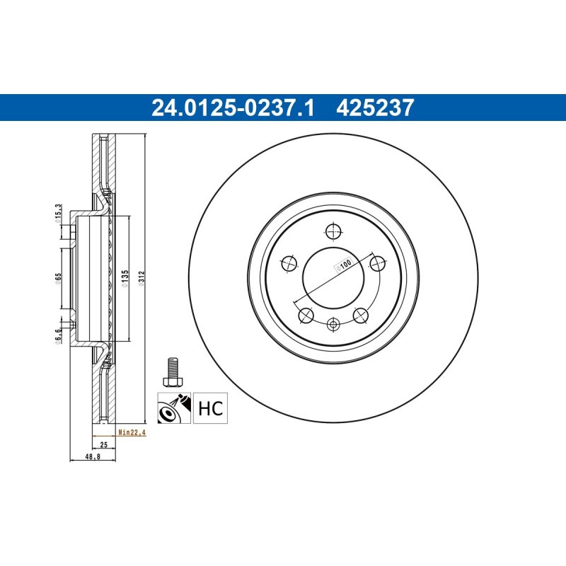 This Brand New Brake Disc ATE OE Ref for VW manufactured by ATE.This is a direct replacement Brake Disc ATE OE Ref part and equivalent to OEM Part number 2Q0615301N and some other cross reference part numbers. This is top quality and fully guaranteed Brake Disc ATE OE Ref manufacturer by ATE with Reference Number 24.0125-0237.1, EAN: 4006633469296. At e Auto Parts, This Brake Disc ATE OE Ref is available at best competitive prices including Vat at £99.00. We are one of the UK`s leading Braking System supplier with an excellent feedback from our customers. Buy with Confidence, 30 days money back guarantee!