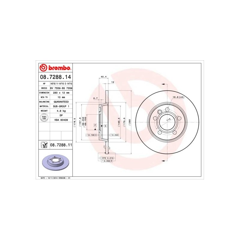 Precision-Engineered Brake Disc BREMBO 08.7288.11 OE Ref A for Your Vehicle