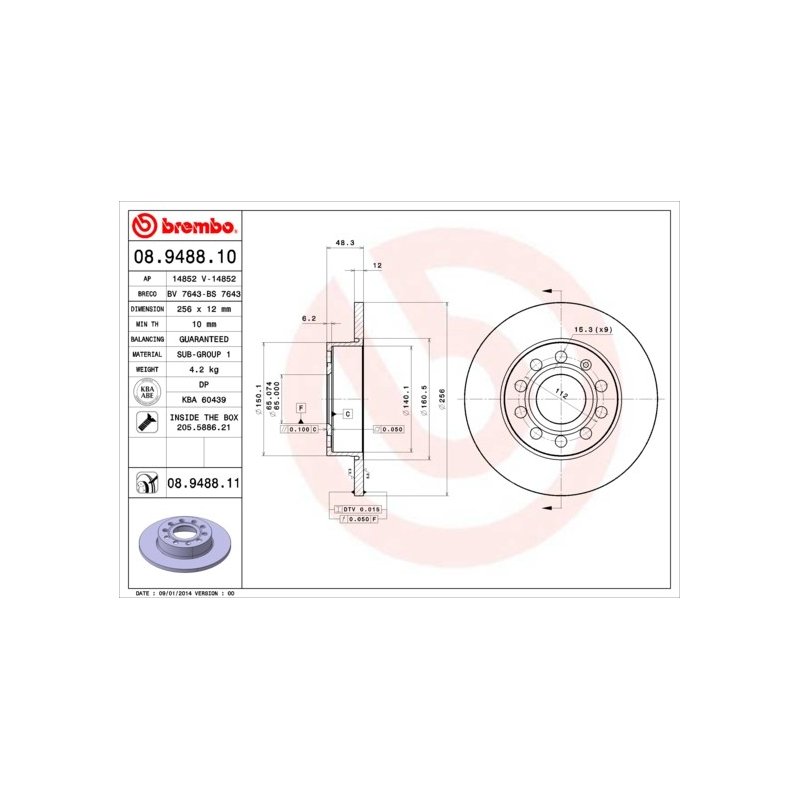 This Brake Disc BREMBO 08.9488.11 OE Ref 1K0615601AJ is specifically engineered for AUDI, SEAT, SKODA, VW, ensuring a precise fit and exceptional performance. Designed to replace OEM Part Number 1K0615601AC, it’s built by trusted manufacturer BREMBO, guaranteeing reliability. With Reference Number 08948811 and EAN EAN: 8020584022993, this replacement part is available at £53.00, VAT included.
