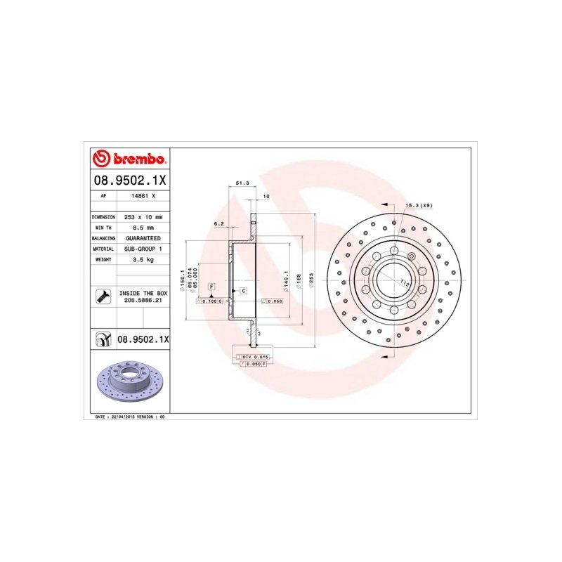 Whether you're replacing a faulty part or upgrading your vehicle, this Brake Disc BREMBO 08.9502.1X OE Ref 1K0615601K ensures a seamless fit and improved functionality. At e Auto Parts, we’re known for our commitment to quality, offering a vast range of Braking System parts to meet all your automotive needs.