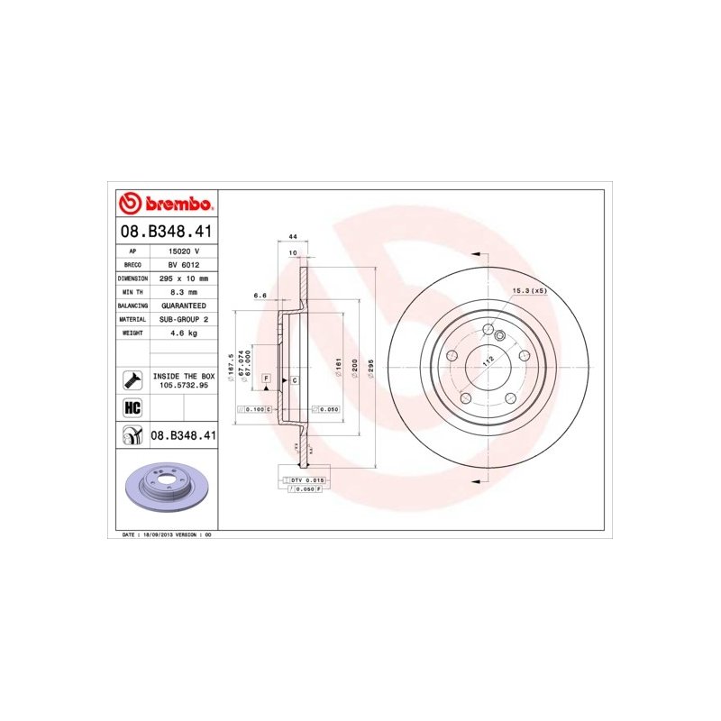 Product: Brake Disc BREMBO 08.B348.41 OE Ref A2464230112