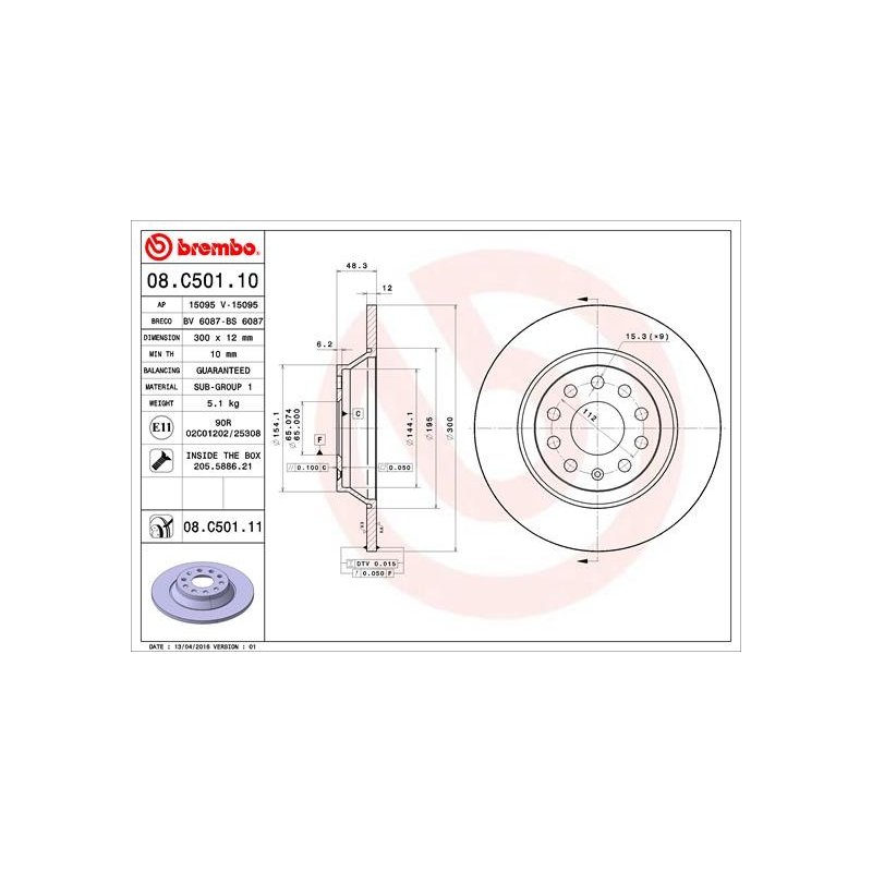 Order Your Brake Disc BREMBO 08.C501.11 OE Ref A Today