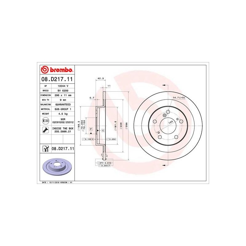 Order your Brake Disc BREMBO 08.D217.11 OE Ref from e Auto Parts and experience superior quality at competitive prices. With a 30-day return policy, you can shop with confidence!