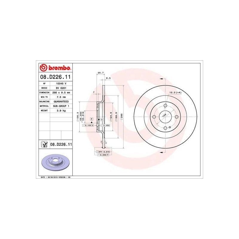 Brake Disc BREMBO 08.D226.11 OE Ref 6000612254