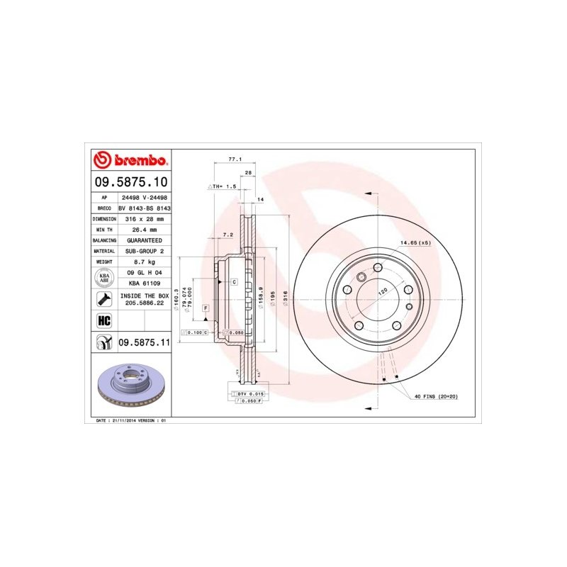 Get your Brake Disc BREMBO 09.5875.11 OE Ref 34116757752 today and enjoy reliable service and fast delivery across the UK and Europe.