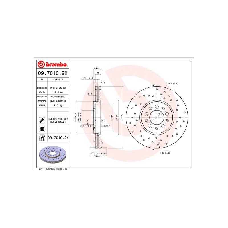 Get your Brake Disc BREMBO 09.7010.2X OE Ref C today and enjoy reliable service and fast delivery across the UK and Europe.