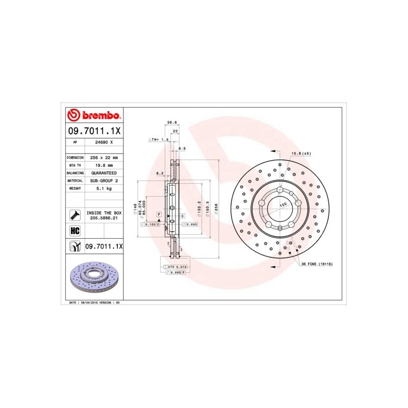 To confirm the correct fitment, it is always recommended to match or Cross Reference the OEM part numbers for this Brake Disc BREMBO 09.7011.1X OE Ref 1J0615301L.
