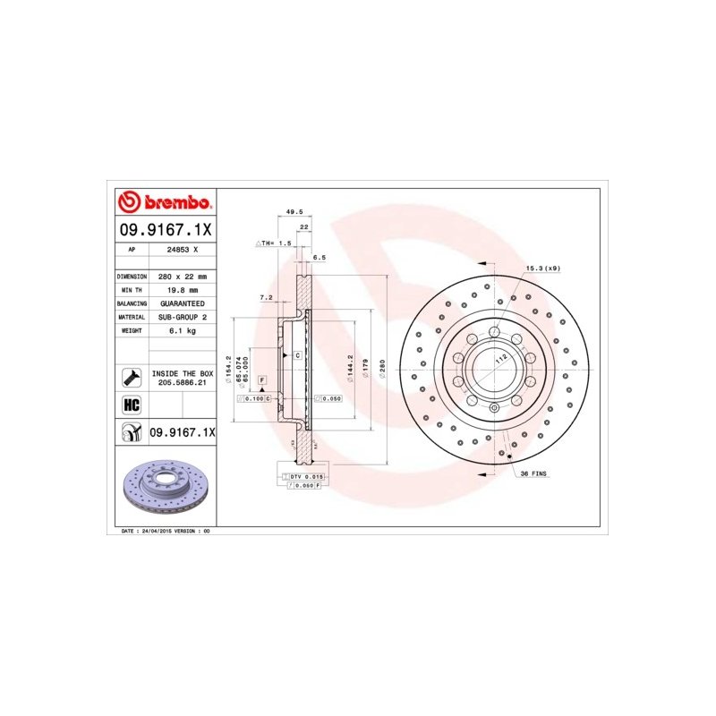 Get your Brake Disc BREMBO 09.9167.1X OE Ref 1K0615301AK today and enjoy reliable service and fast delivery across the UK and Europe.