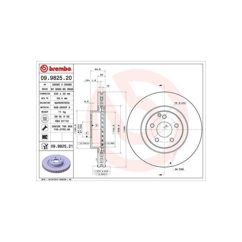 To confirm the correct fitment, it is always recommended to match or Cross Reference the OEM part numbers for this Brake Disc BREMBO 09.9825.21 OE Ref 2044212912.