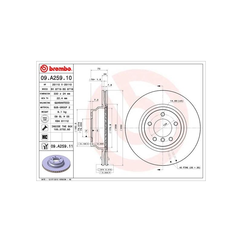 To confirm the correct fitment, it is always recommended to match or Cross Reference the OEM part numbers for this Brake Disc BREMBO 09.A259.11 OE Ref 34116854999.