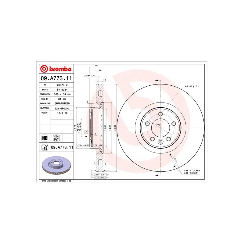 This Brake Disc BREMBO 09.A773.11 OE Ref LR027106 is a cost-effective solution for your LAND ROVER, providing a perfect replacement for OEM Part Number LR016176. Manufactured by BREMBO, it’s designed for long-term durability and exceptional performance. At £124.31, it’s one of the best deals you’ll find on a high-quality Braking System part. Reference Number 09A77311 and EAN EAN: 8020584220856 make it easy to identify and track.