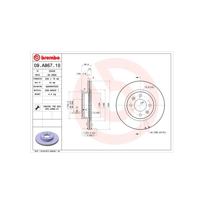 Engineered to replace OEM Part Number 517120X700, this Brake Disc BREMBO 09.A867.10 OE Ref 51712B9000 is the ideal choice for your HYUNDAI, KIA. Manufactured by BREMBO, it offers unparalleled reliability and performance. Available at £56.00 (VAT included), it’s marked with Reference Number 09A86710 and EAN EAN: 8020584033081 for easy tracking.