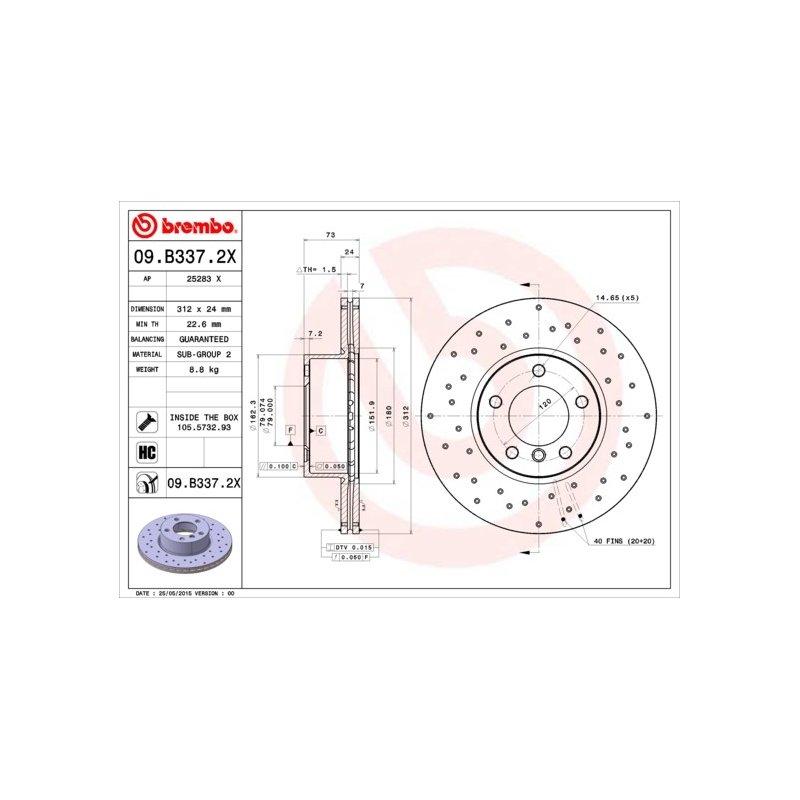 Why This Brake Disc BREMBO 09.B337.2X OE Ref 34116783755 Stands Out: