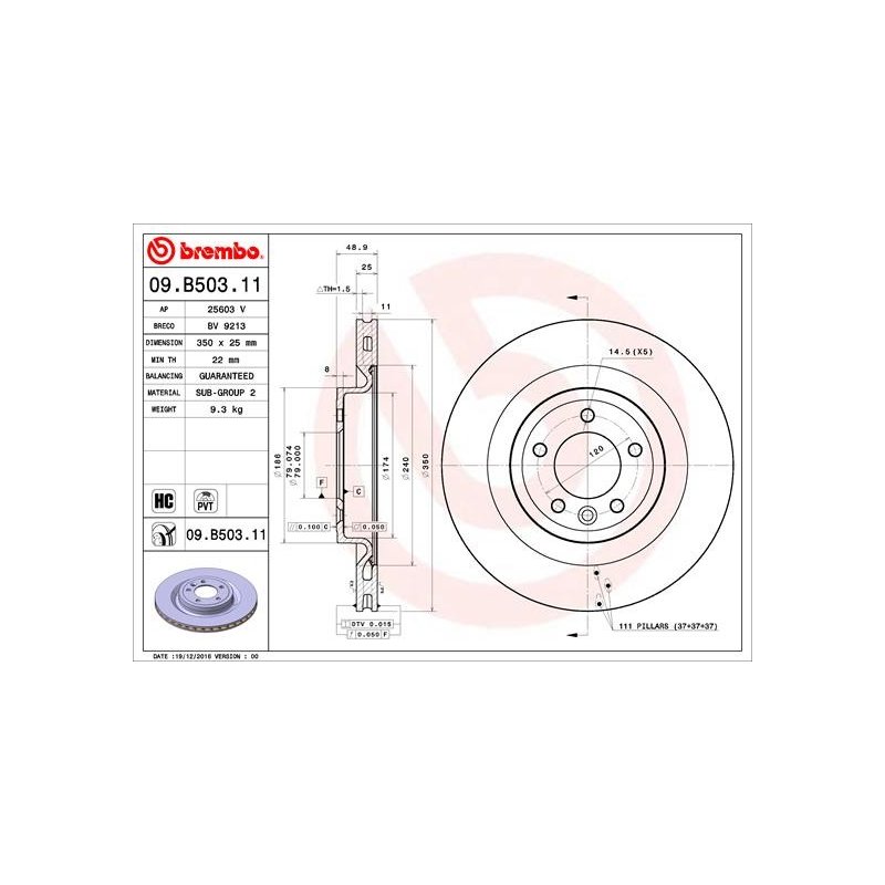 Get your Brake Disc BREMBO 09.B503.11 OE Ref LR099036 today and enjoy reliable service and fast delivery across the UK and Europe.