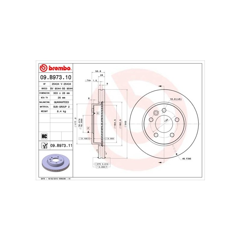 To confirm the correct fitment, it is always recommended to match or Cross Reference the OEM part numbers for this Brake Disc BREMBO 09.B973.11 OE Ref 2H0615301D.