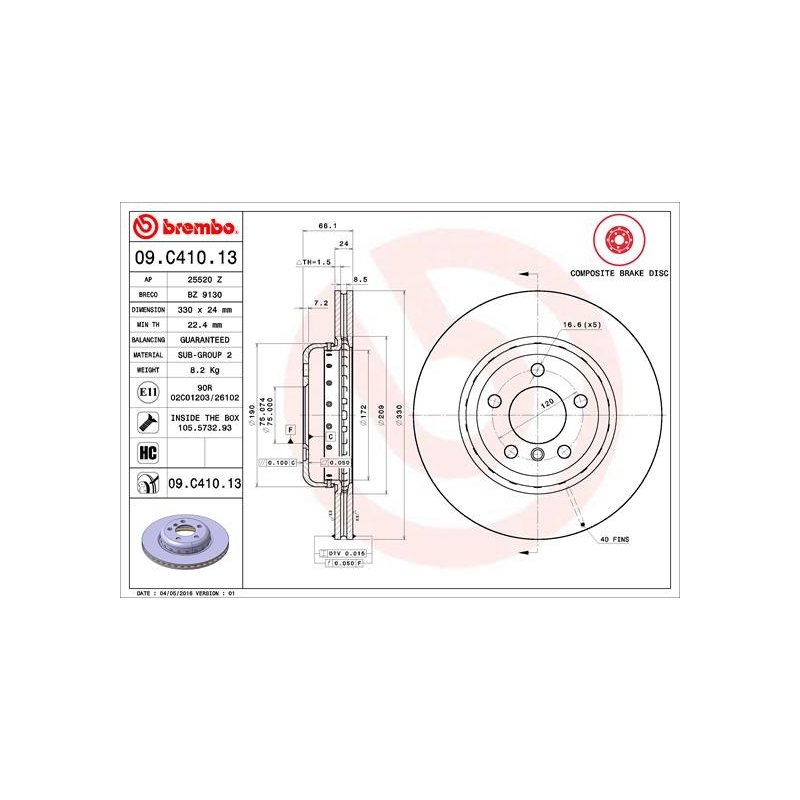 Using our vehicle compatibility tool or your UK registration number, you can quickly verify if this Brake Disc BREMBO 09.C410.13 OE Ref 34116896652 is a match. Alternatively, cross-reference the OEM number 34116794429 to confirm fitment.