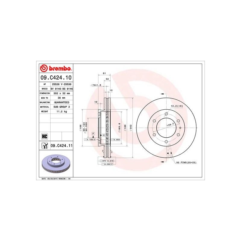 Product: Brake Disc BREMBO 09.C424.11 OE Ref 1763037