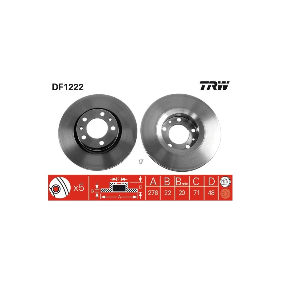 Engineered to replace OEM Part Number 4246E8, this Brake Disc OE Ref 95 637 322 is the ideal choice for your CITROEN, PEUGEOT. Manufactured by TRW, it offers unparalleled reliability and performance. Available at £80.00 (VAT included), it’s marked with Reference Number DF1222 and EAN EAN: 3322936122203 for easy tracking.