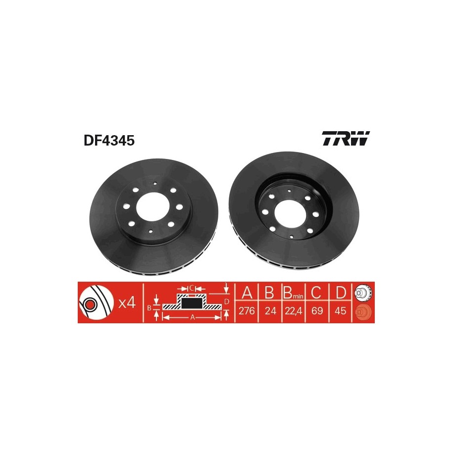 Brake Disc TRW DF4345 OE Ref MR475331