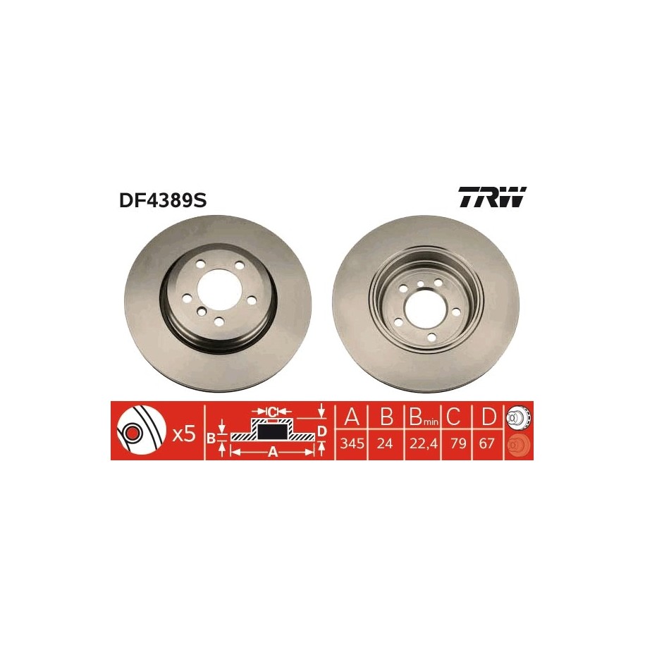 Brake Disc TRW DF4389S OE Ref 34 21 1 166 129