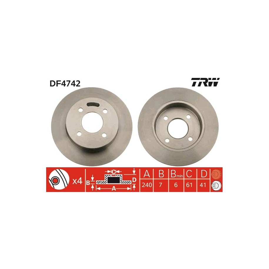 This Brand New Brake Disc OE Ref 43206 5F001 for NISSAN manufactured by TRW.This is a direct replacement Brake Disc OE Ref 43206 5F001 part and equivalent to OEM Part number 432065F001 and some other cross reference part numbers. This is top quality and fully guaranteed Brake Disc OE Ref 43206 5F001 manufacturer by TRW with Reference Number DF4742, EAN: 3322937563692. At e Auto Parts, This Brake Disc OE Ref 43206 5F001 is available at best competitive prices including Vat at £79.00. We are one of the UK`s leading Braking System supplier with an excellent feedback from our customers. Buy with Confidence, 30 days money back guarantee!
