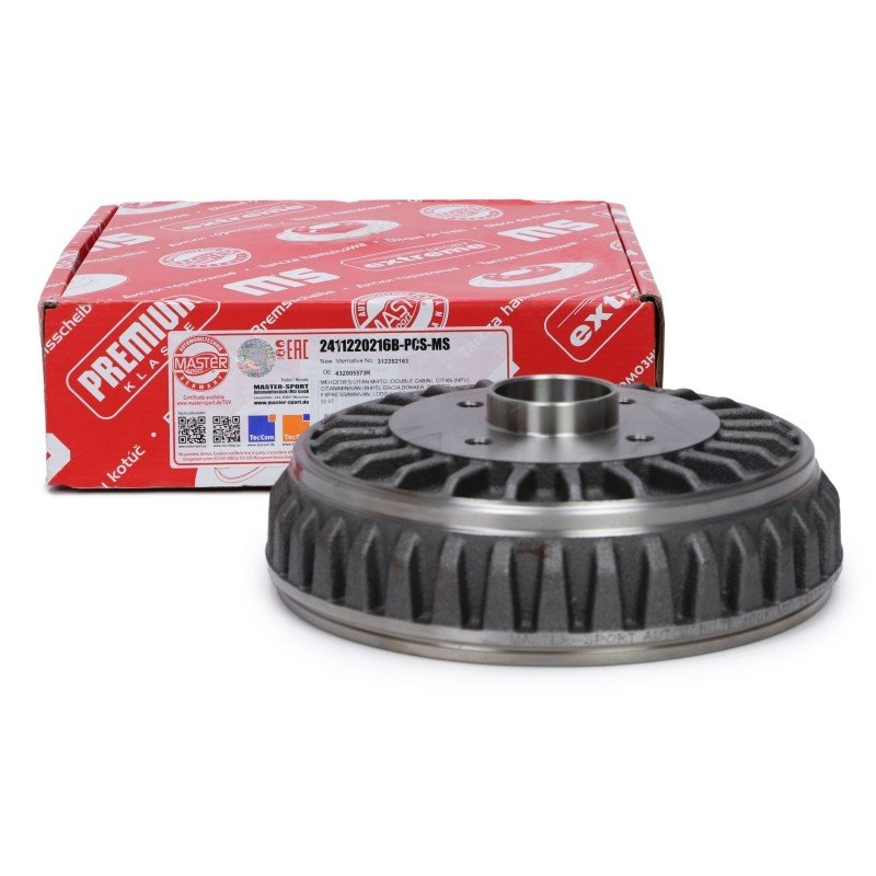 This Brake Drum Set MASTER SPORT OE Ref 432001501R is supplied by MASTER SPORT as a replacement for OEM reference 432005573R. It is intended for use in selected DACIA, FIAT, LADA, LANCIA, MERCEDES-BENZ, RENAULT vehicles and designed to meet original equipment fit and functional requirements.