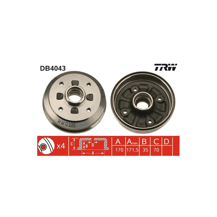 This Brake Drum OE Ref D001 26 251B is crafted to the highest standards, providing an OEM-quality replacement for Part Number DA0126251. Manufactured by TRW, it is rigorously tested to ensure optimal performance and longevity. Available for just £75.00, it includes Reference Number DB4043 and EAN EAN: 3322937075232 for easy identification.