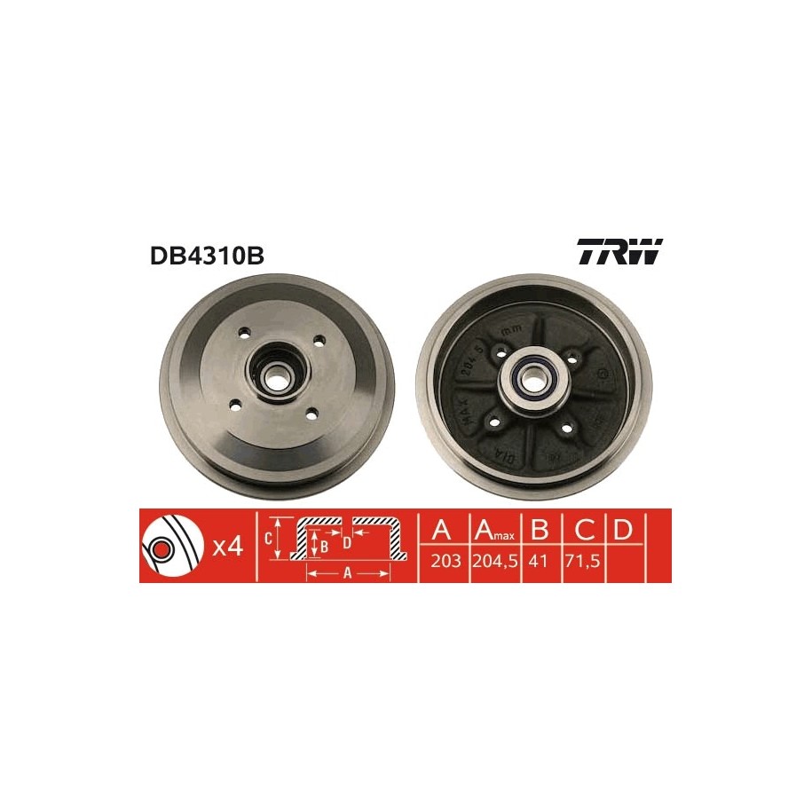 Enhance your vehicle's performance with this high-quality Brake Drum OE Ref 4247 46, specially crafted for CITROEN, PEUGEOT. As an ideal replacement for OEM Part Number 424746, this component is manufactured by the trusted brand TRW. With Reference Number DB4310B and EAN EAN: 3322937811151, this part ensures a perfect match to your vehicle’s original specifications. Available for just £151.00 (inclusive of VAT), it provides unbeatable value without compromising on quality.