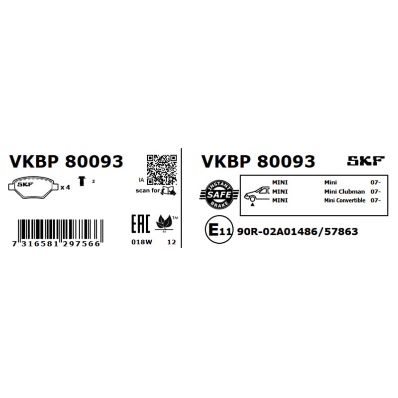 Designed to meet the specific needs of your BMW, MINI, this Brake Pad Set SKF OE Ref is a high-performance replacement part that matches OEM Part Number 34106884263. Manufactured by the renowned brand SKF, it offers reliability and durability, making it a dependable choice for your repair or replacement needs. Reference Number: VKBP 80093, EAN: EAN: 7316581297566, and priced affordably at £59.00 (inclusive of VAT).