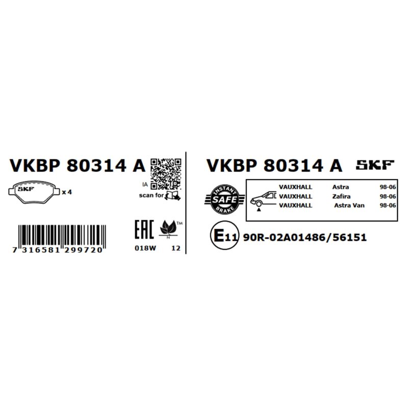 This Brake Pad Set SKF OE Ref is a cost-effective solution for your CHEVROLET, OPEL, VAUXHALL, providing a perfect replacement for OEM Part Number 1605009. Manufactured by SKF, it’s designed for long-term durability and exceptional performance. At £47.00, it’s one of the best deals you’ll find on a high-quality Braking System part. Reference Number VKBP 80314 A and EAN EAN: 7316581299720 make it easy to identify and track.