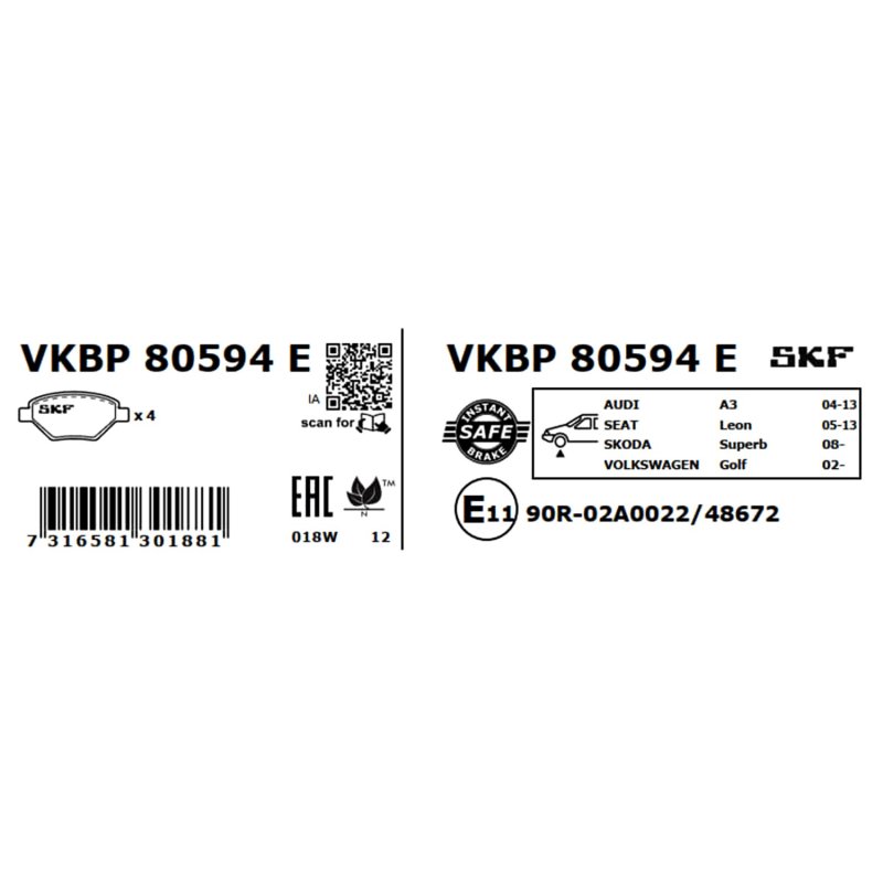 Brake Pad Set VKBP80594E SKF VKBP 80594 E OE Ref 1K0615105DF