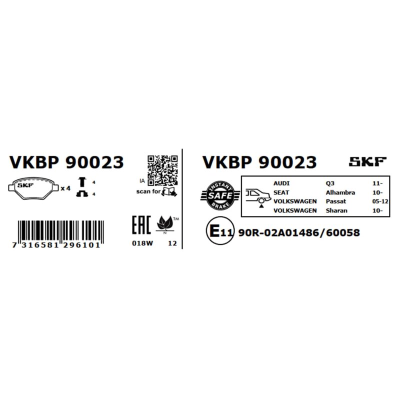 This Brake Pad Set SKF OE Ref is supplied by SKF as a replacement for OEM reference 1K0698451L. It is intended for use in selected AUDI, SEAT, VW vehicles and designed to meet original equipment fit and function requirements.