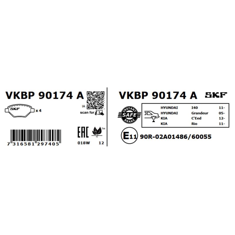 This Brake Pad Set SKF OE Ref is supplied by SKF as a replacement for OEM reference 48413350A0. It is intended for use in selected HYUNDAI, KIA, SSANGYONG vehicles and designed to meet original equipment fit and functional requirements.