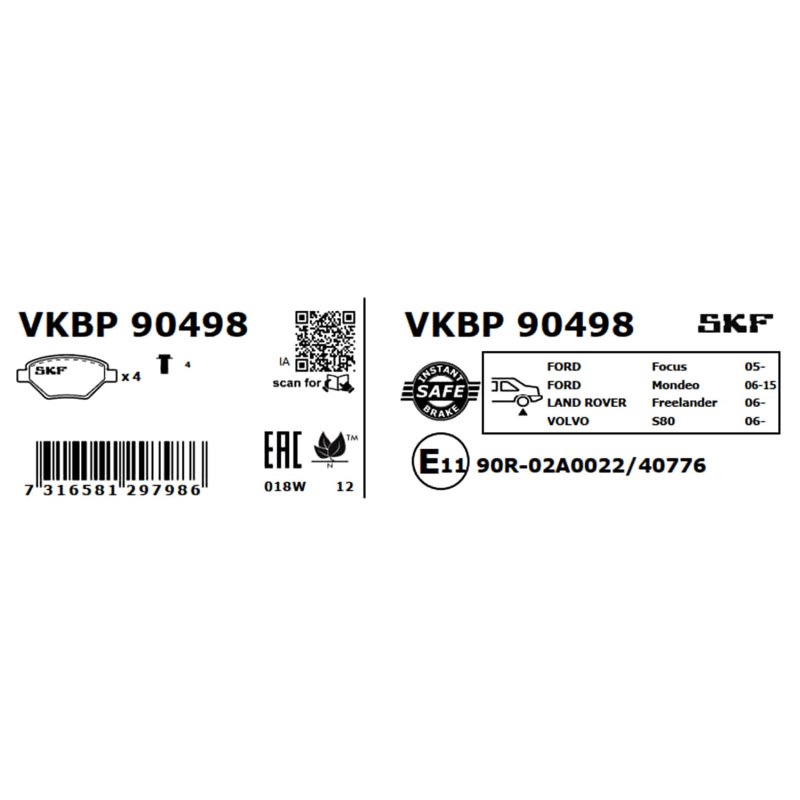 This Brake Pad Set SKF OE Ref is designed for those who demand reliability and value for money. Equivalent to OEM Part Number 1438867, it’s manufactured by SKF, a name synonymous with quality and precision engineering. Available at an unbeatable price of £57.00, it includes Reference Number VKBP 90498 and EAN EAN: 7316581297986 for easy identification.