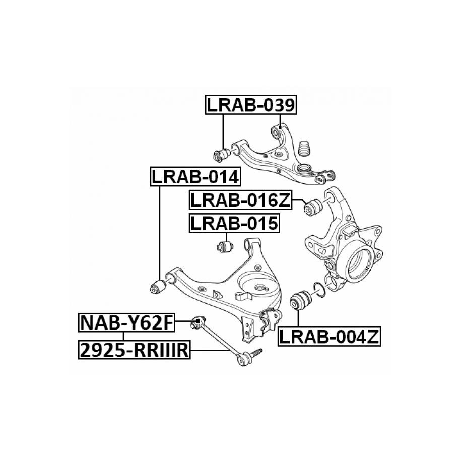 This Brand New Bushing, Rear Lower Control Arm OE Ref RGG000084 for LAND ROVER manufactured by FEBEST.This is a direct replacement Bushing, Rear Lower Control Arm OE Ref RGG000084 part and equivalent to OEM Part number RGX000060 and some other cross reference part numbers. This is top quality and fully guaranteed Bushing, Rear Lower Control Arm OE Ref RGG000084 manufacturer by FEBEST with Reference Number LRAB-014, EAN: 4056111066110. At e Auto Parts, This Bushing, Rear Lower Control Arm OE Ref RGG000084 is available at best competitive prices including Vat at £29.00. We are one of the UK`s leading Suspension supplier with an excellent feedback from our customers. Buy with Confidence, 30 days money back guarantee!