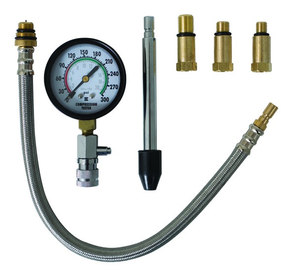 This compression tester kit comes complete with a large, easy to read 2 1/2 dial face with accurate Bourdon tube meter movement.