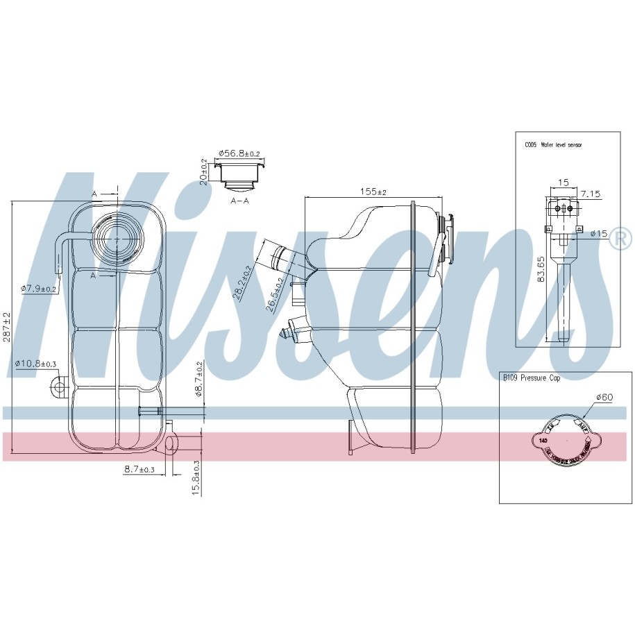 This Coolant Expansion Tank OE Ref A is supplied by NISSENS as a replacement for OEM reference 2025000249. It is intended for use in selected FIAT, MERCEDES-BENZ vehicles and designed to meet original equipment fit and function requirements.