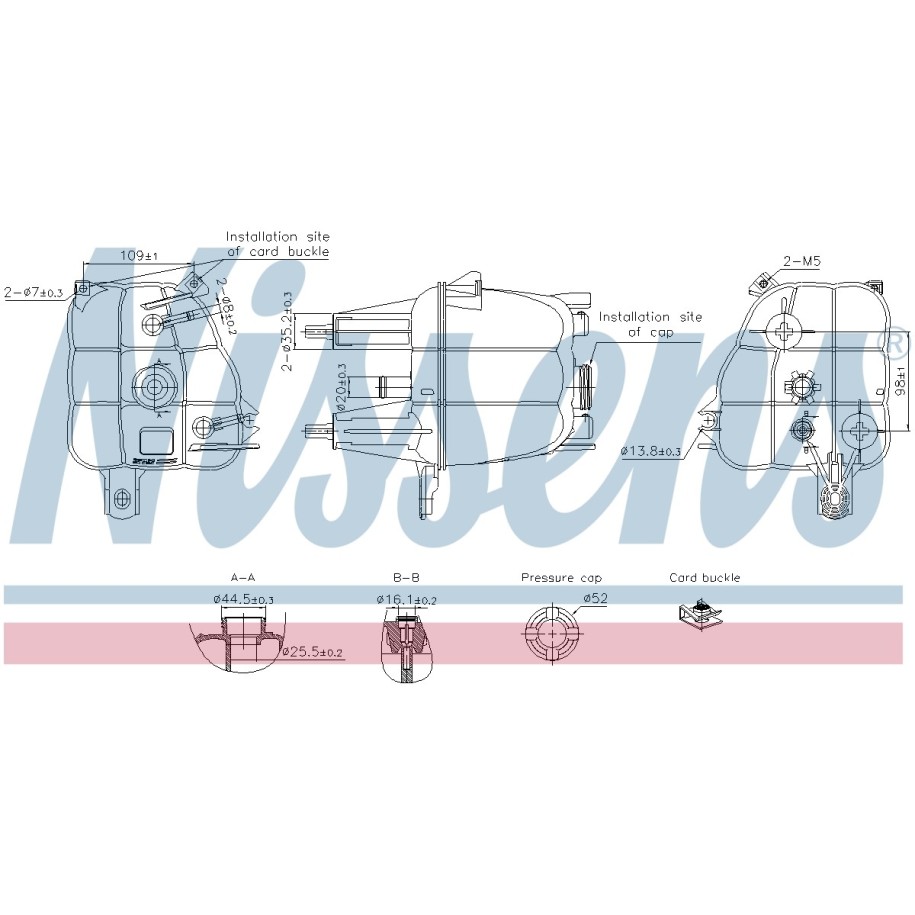 This Coolant Expansion Tank OE Ref 1358583080 is supplied by NISSENS as a replacement for OEM reference 1323KJ. It is intended for use in selected ALFA ROMEO, CITROEN, FIAT, PEUGEOT vehicles and designed to meet original equipment fit and function requirements.