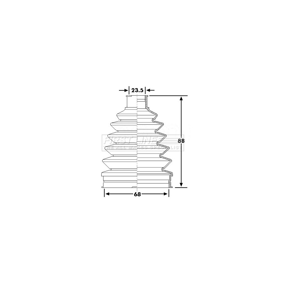 This Cv Joint Boot Kit FIRST LINE OE Ref LR018482 is supplied by FIRST LINE as a replacement for OEM reference 71742718. It is intended for use in selected FIAT, LAND ROVER vehicles and designed to meet original equipment fit and function requirements.